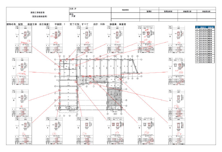 事務所での配筋写真の整理はなくなり、データ送信後、配筋写真帳票がすぐに出来上がります。
